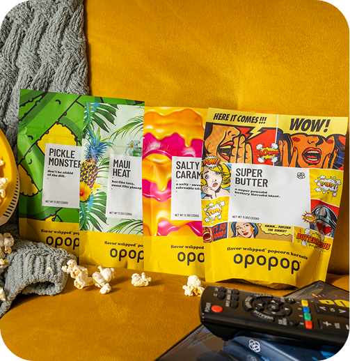 Once you find your favorite flavors in a Discovery Kit you can reorder “Big Bags” of Flavor Wrapped Kernels and pour them into the Opopop popper that comes with each Discovery Kit.