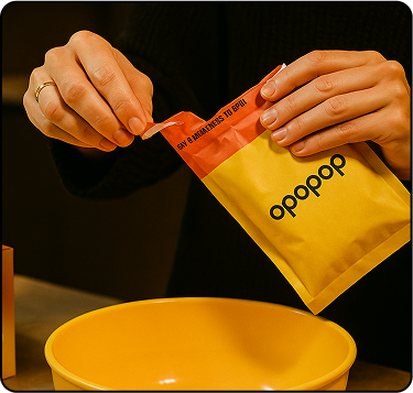 "With dietary restrictions, I’m picky about snacks—but Opopop is gluten-free and made with high-quality ingredients, so I can enjoy without guilt. The Pop Cups are a total game-changer, perfectly balancing sweet and salty in every bite."
